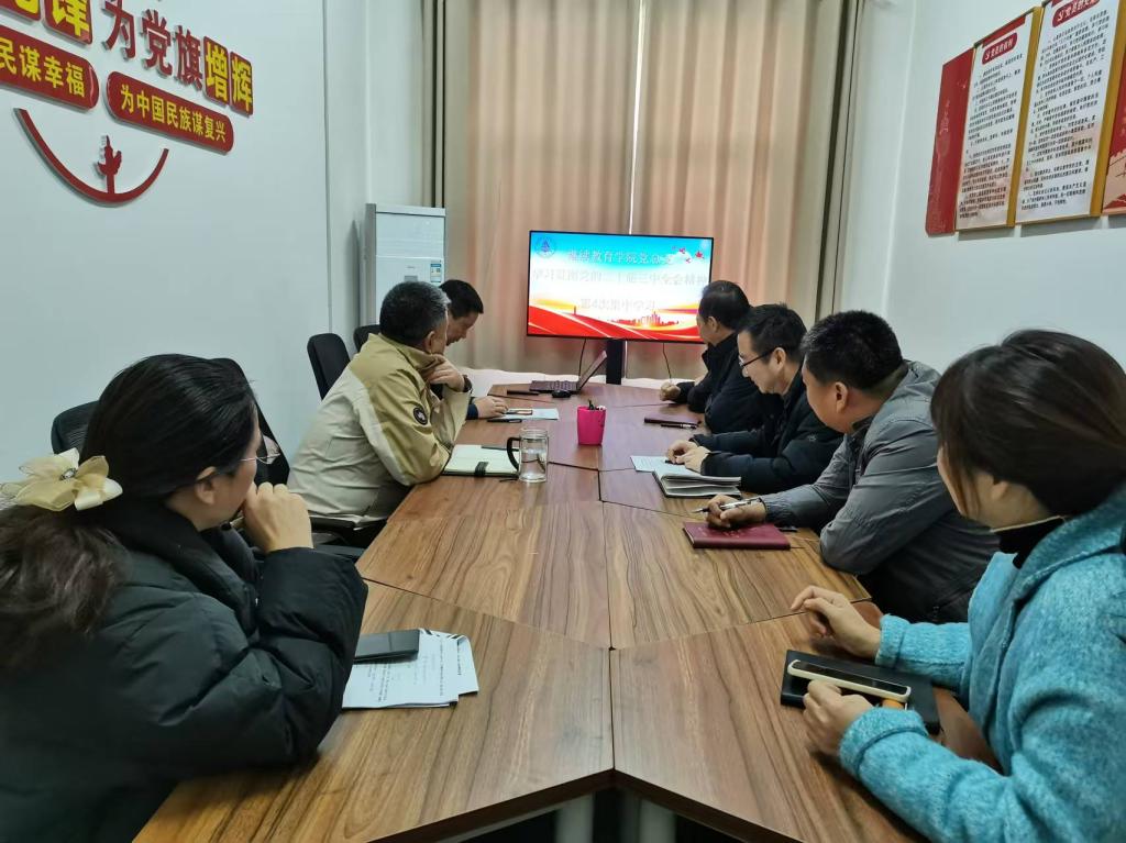 2024年12月4日下午,继续教育学院党总支学习贯彻党的二十届三中全会精神第4次集中学习在党员活动室进行,集中学习由党支部书记钱中华主持,学院副科级及以上干部参加。